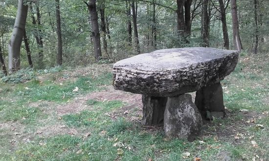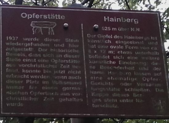 Offertafel op de Hainberg. Deze steen werd hier in 1937 teruggevonden. Er is geen bewijs dat hier inderdaad een vroeggermaanse offerplaats was, maar in de volksmond werd deze plek wel zo genoemd.