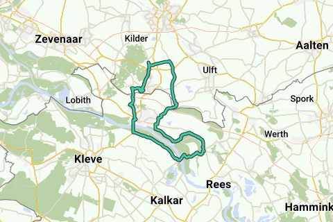 Lus langs knooppunten vanuit Zeddam naar de Dornicksche Waard en de Grietherorter Altrhein en terug langs Emmerich am Rhein en 's Heerenberg.