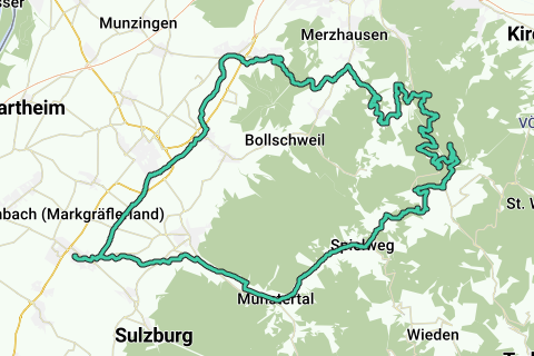 De afdaling komt uit op de Landesstraße die je naar Münstertal brengt. In Münstertal volg je een fietspad langs een spoorlijn om uiteindelijk toch nog 1,2 kilometer over de drukke doorgaande weg te fietsen. Daarna ga je over grotendeels secundaire wegen terug naar Heitersheim.