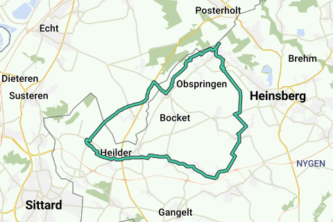 Beschrijving: Deze ronde door de Selfkant in het meest westelijke puntje van Duitsland is bijna volledig vlak en daardoor ook geschikt voor fietsers met een bescheiden conditie. Het parcours is bijna volledig geasfalteerd, er zijn slechts enkele korte en goed onderhouden gravelstukken. In het begin gaat de route langer door de vallei van de Saeffelbeek, later overheerst open, licht golvend akkerland, waar veel windturbines staan.