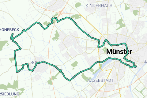 Deze rondrit vanuit Münster naar het westen door mooie omgeving. Gevarieerd en erg stil zodat je de vogels goed kunt horen. Een aantal kastelen liggen langs deze route waarvan een routedeel ook van de dichteres Amalia van Droste route is. Je kunt ook de knooppunten volgen maar die heb ik niet gevolgd om meer van de rust te kunnen genieten.