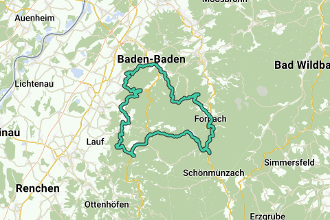 Bülhertal – Unterstmatt - Hunseck - Sand (Bobbahn Meliskopf) – Herrenwies (Gasthaus Waldesruh) – Schwarzenbach See – Raumünzach – Forbach (Freakfelsen) –Bermersbach – Murgtal- Rote Lache (Waldgasthaus Scherrhof) – Lichtental – Varnhalt – Nieuweier (Zimmerplatz) – Natuurpark Schwarzwald Mitte/Nord - Bülhertal.