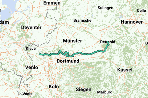 Volgt de Lippe stroomafwaarts vanaf Detmold tot Xanten