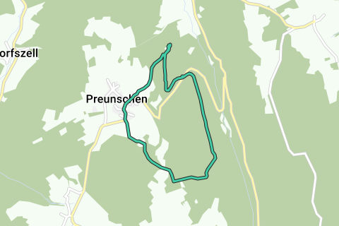 Rondwandeling in de buurt van het dorp Preunschen, door velden en bossen. De tocht komt lang het Watterbacher huis (museum) en de ruïnes van slot Wildenburg. Er is een parking in de buurt van het slot op de MIL 17 (weg naar Preunschen). Ongeveer 500 m asfalt in Preuschen; verder allemaal onverharde veldwegen en bospaden