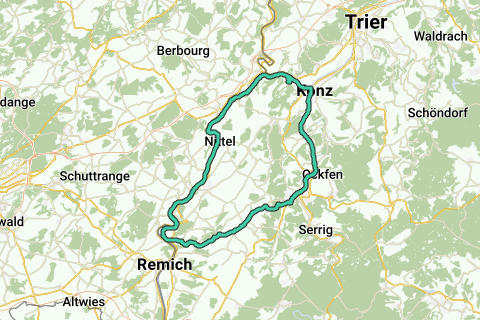 Beginnen langs de Moezel , daarna door de Eifel tot aan Saarburg en verder langs de Saar terug naar de Moezel.
