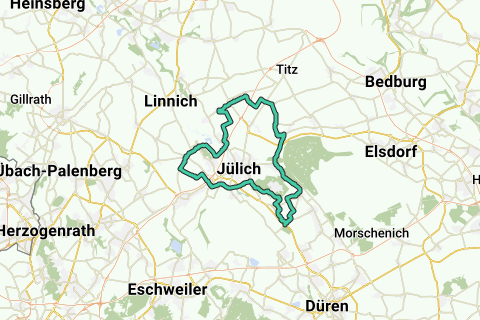 Leuke kennismaking met Jülich. Weinig kans dat je veel auto's tegenkomt langs deze route. Tijdens deze route zit je met plezier op je fiets.