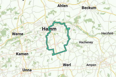 Ontdek met deze route Hamm. Minimale uitstoot voor wie het openbaar vervoer combineert met recreatief fietsen. Deze route kan je combineren met het openbaar vervoer. (treinstation Station Hamm). Deze fietsroute is voor iedereen haalbaar en zal zeker gesmaakt worden. Een route die je zeker zal bekoren. Voor dat je je weg vervolgt, stop zeker eens aan Hammer SpVg. Zeer plezante fietskilometers langs deze route.