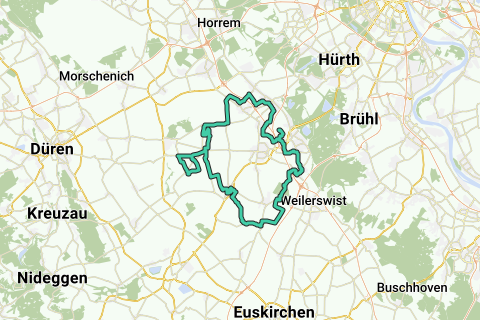 Met deze fietsroute ontdek je een deel van Erftstadt. Een route die je zeker zal bekoren. De mooie wegen wisselen elkaar in snel tempo af.