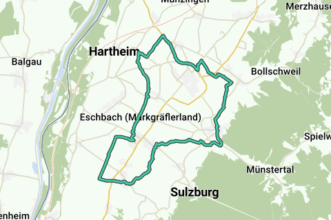 Je mag je verwachten aan een zeer groenrijke tocht. Voor wie houdt van kastelen en hun verhaal: houd even halt bij het kasteel (Malteserschloss Heitersheim). Neem je tijd voor deze route.