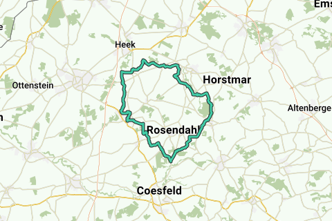 Weinig kans dat je veel auto's tegenkomt langs deze route. Geen onverhard, dus ook geschikt voor de racefiets. Sportieve fietsers gaan snel voorbij aan het kasteel (Schloss Darfeld) maar wie even halt houdt, geniet van dit imposante bouwwerk. Een route die je zeker zal bekoren. Deze fietsroute is voor iedereen haalbaar en zal zeker gesmaakt worden. Een route voor de meerwaardezoeker!
