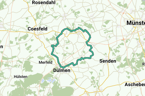 De route brengt jou langs de mooiste wegen langs Wiesmann. Met een e-bike zou deze route zeker geen probleem mogen zijn. Laat je onderdompelen in de natuur. Combineer bezinning en sportiviteit in deze route langs Heilig Kruiskerk. Je kan er even halthouden aan deze kerk. Voor wie houdt van kastelen en hun verhaal: houd even halt bij het kasteel (Slot Buldern). Er zijn niet overdreven veel plaatsen waar je een drankje kunt nemen, maar er zijn er wel.
