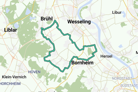 Leuke kennismaking met Bornheim. Deze route is ook voor de racefiets geschikt want ze gaat volledig over verharde wegen. Geniet van deze "col hors catégorie" voor de gemiddelde fietser. Klimmen, dalen, sprintjes doen ... maar ook genieten van het landschap en de omgeving: in de buurt van Vorgebirge kan het allemaal. Kijk zeker goed rond. Anders mis je enkele pareltjes langs deze route. Je vervelen doe je niet langs deze route.