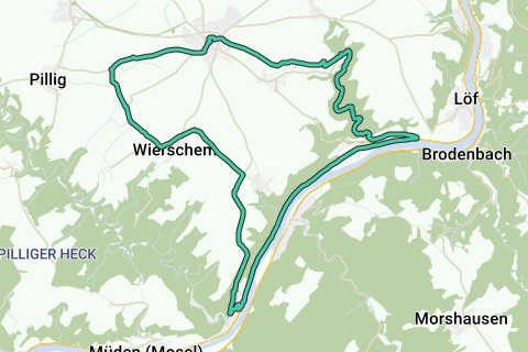 Deze fietsroute gaat grotendeels door volgende regio: Mayen-Koblenz. Bijna de hele route is licht heuvelachtig. Deze route is ook voor de racefiets geschikt want ze gaat volledig over verharde wegen. Langs het water zie je altijd wel wat typische fauna en flora. Verrekijker mee? Genieten maar! Samengevat: deze route is voor de ervaren fietser.
