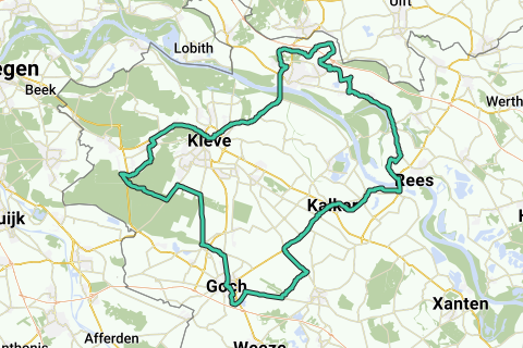 Deze fietstocht in en rond Donsbrüggen geeft je een goed beeld van de stad en zijn omgeving. Voor wie het wat ecologischer wil houden: combineer deze fietslus met het openbaar vervoer (treinstation Station). Nood aan een stop tijdens deze route? Dan moet je zeker een bezoekje brengen aan het museum (Het Museum Kurhaus Kleve) dat langs jouw route gelegen is. Tijdens deze route geniet je ook van het zicht op een kasteel (Zwanenburcht). Een pittig ritje. Toch maar even stoppen voor een koffiestop! Samengevat: deze route is voor de ervaren fietser.