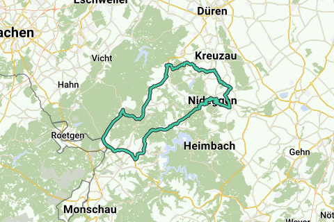 Deze fietslus brengt je langs enkele leuke fietswegen en -paden langs de brug: Brück. Deze route heeft als thema "bossen". Tijdens deze route fiets je langs een bos (Slag om het Hürtgenwald). Dit is een route met een uitdaging. Je dient enige beklimmingen onder de wielen te schuiven. Een samenvatting: fietsen fietsen fietsen is het credo!