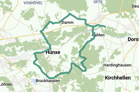 Deze fietsroute gaat grotendeels door volgende regio: Hünxe. Weinig kans dat je veel auto's tegenkomt langs deze route. Deze route kan je bereiken met openbaar vervoer. Als de weergoden je goed gezind zijn, is dit een mooi tochtje.
