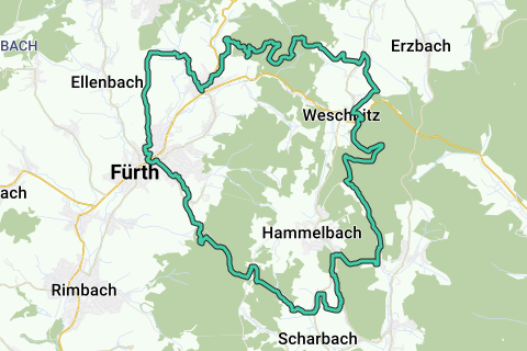 Geniet van de rust en stilte aan het water van de rivier Bach langs de Dickhecke. Deze route bevat talloze hoogtemeters. Je kunt deze route vanaf elke plek beginnen. De kerk (Walburgiskapel) is echter zeker een goed startpunt. Station Bahnhof Fürth ligt langs deze route. Geen verveling langs deze route.