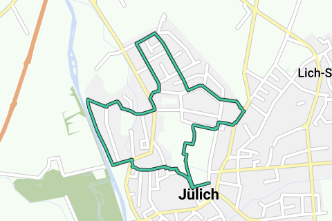 Een mooie route door Jülich. Weinig kans dat u langs deze route veel auto's tegenkomt. Deze route loopt over onverharde paden. Bij droog weer zijn ze echter in uitstekende staat. Deze route loopt door een groene omgeving. De mooie paden wisselen elkaar in snel tempo af. Bewonder ook zeker de bezienswaardigheden langs deze route (onder andere de citadel van Jülich).