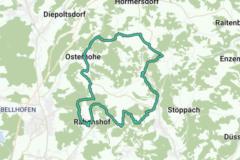 Het zou geen overdreven luxe zijn als u eens bij een straatcafé langs deze route stopt. Het wordt spannend! Weinig kans dat u langs deze route veel auto's ziet. Deze route kan af en toe hobbelig zijn. Een deel van de route is onverhard. Tijdens deze route ziet u een prachtig kasteel (Burg Hohenstein). Het Maartensbekerbos van Algersdorf is zeker een bezoek waard! Een route voor de waardezoeker! Een route die u zeker zal betoveren.