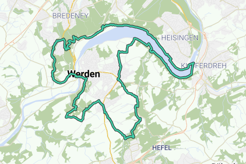 Aangename kennismaking, Essen. Het zou geen overdreven luxe zijn als u eens bij een straatcafé langs deze route stopt. Het wordt spannend! Station Haltepunkt Essen-Hügel ligt langs deze route. Wie graag wil genieten of "verblijven": stop eens bij het klooster (Klooster Werden). U kunt deze route vanaf elke plek beginnen. De kerk (St.-Ludgerus-Kerk) is echter zeker een goed startpunt. Stap eens af en bewonder het kasteel langs deze route (Kasteel Baldeney). Ontdek de regio langs onverharde paden. Een bezienswaardigheid langs deze route moet u zeker gezien hebben: Folkwang Universiteit voor de Kunsten. Genieten in het kwadraat!