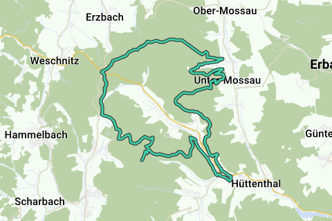 Een heuvelachtige route door het Mossautal. Weinig kans dat u langs deze route veel auto's ziet. Deze tour is zeker niet overal vlak. Ontdek de regio langs onverharde paden. Er zijn niet overdreven veel horecagelegenheden waar u iets kunt drinken, maar er zijn er enkele. Kijk goed om u heen. Anders mist u enkele parels langs deze route.