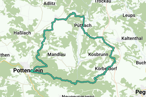 Het zou geen overdreven luxe zijn als u eens bij een straatcafé langs deze route halt houdt. Het wordt stijlvol! Een mooie lus door Pottenstein. Deze route kan af en toe hobbelig zijn. Een deel van de route is ongeasfalteerd. Weinig kans dat u langs deze route veel auto’s ziet. Kijk goed om je heen. Anders mis je enkele parels langs deze route. De mooie paden wisselen zich in snel tempo af.