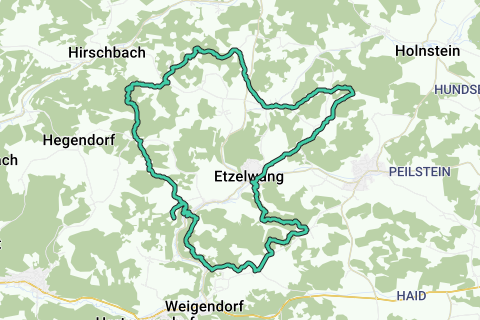 Het zou geen overdreven luxe zijn als u eens aan een straatcafé langs deze route stopt. Het wordt spannend! Aangename kennismaking, Etzelwang. Langs deze route legt u zeker mooie en rustige wegen af. Deze route voert langs enkele onverharde wegen. Wie van kastelen en hun geschiedenis houdt: stop eens bij het kasteel (Kasteel Neidstein). Een route die u zeker zal betoveren. Bijna vergeten, u stopt vast ook eens bij Höhenglücksteig.