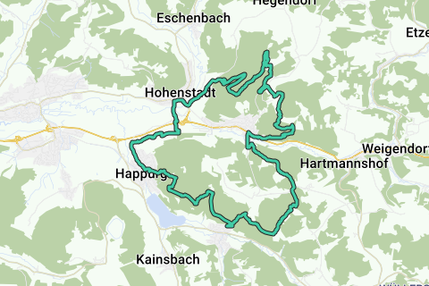 Een mooie route door Pommelsbrunn. Ontdek de regio langs onverharde paden. Langs deze route leg je zeker mooie en rustige wegen af. Een bezienswaardigheid langs deze route moet je echt gezien hebben: Doggerstollen. Als de weergoden goed gezind zijn, is dit een mooie tour. Neem de tijd voor deze route.