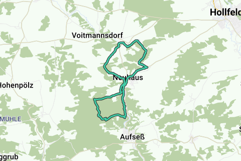 Een heuvelachtige route door Aufseß. Een route waarbij je je zeker niet zult vervelen. Een route voor de waardezoeker! Dompel jezelf onder in de natuur. Op een broeierige zomerdag biedt het kasteel (Kasteel Oberaufseß) een welkome frisse rustpauze (indien geopend). Deze tour is beslist niet overal vlak. Weinig kans dat je langs deze route veel auto’s ziet. Deze route kan af en toe hobbelig zijn. Een deel van de route is onverhard.