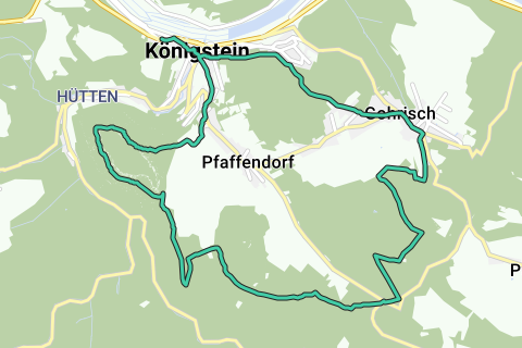 Een mooie lus door Königstein/Saksische Zwitserland. Deze route kan af en toe hobbelig zijn. Een deel van de route is onverhard. Weinig kans dat u langs deze route veel auto's ziet. U kunt deze route overal starten. De kerk (Marienkirche) is echter zeker een goed startpunt. Langs het water ziet u altijd typische flora en fauna. Verrekijker mee? Gewoon genieten! U zult zeker genieten van de prachtige vergezichten langs deze route. Kijk goed om je heen. Anders mis je enkele pareltjes langs deze route. Iedereen zal het met mij eens zijn: een mooie route.