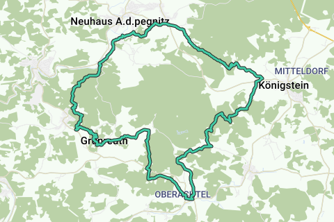 Ontdek de regio langs onverharde wegen. Deze tour is zeker niet overal vlak. Langs deze route leg je in ieder geval mooie en rustige paden af. Bewonder zeker ook de bezienswaardigheden langs deze route (onder andere de kasteelruïne op de Hasenleite). Geen verveling langs deze route.