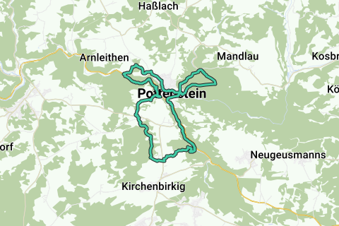 Een mooie rondleiding door Pottenstein. Dompel uzelf onder in de natuur. Deze tour is zeker niet overal vlak. Deze route loopt langs enkele onverharde paden. Wie graag wil genieten of "verblijven": stop eens bij de kerk (St. Bartholomäus). Een route die u zeker zal betoveren. Bijna vergeten, stop zeker ook eens bij het Felsenbad Pottenstein.