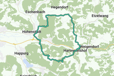 Over bergen en valleien verkent u Pommelsbrunn. Deze route voert over onverharde paden. Bij droog weer zijn ze echter in uitstekende staat. Zeker een keer stoppen bij Burgstall Hartmannshof. Weinig toe te voegen aan deze uitstekende route.