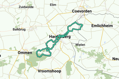 De route is op een tweetal punten in te korten. In Hardenberg en in Diffelen kun je makkelijk de lus verkorten.