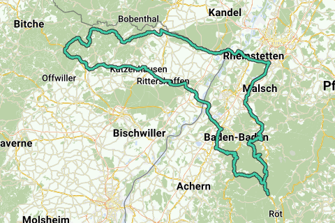 Van het noorden van het zwarte woud naar de vogezen en met een bocht weer terug naar het noorden van het zwarte woud.