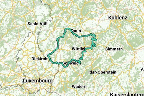 270 km door De eifel en langs de oevers van de moezel tot Trier en via de Luxemburgse grens terug naar Kruchten.