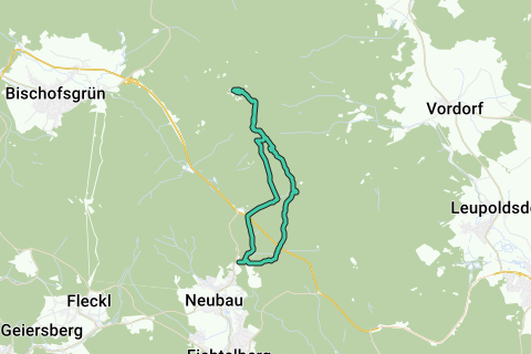Wandeling van aan de Fichtelsee (camping en parking) naar de verlaten radartoren boven op de Schneeberg. Afwisselen wandelpaden en brede boswegen. Geen asfalt. Autovrij, behalve bij het oversteken van de B 303. Onderweg kom je langs Nusshardt, een merkwaardige rotsformatie met uitzichtpunt in een stukje reservaat.