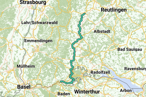 Pelgrimsroute om te wandelen tussen Horb am Neckar en Waldshut. De volgende steden liggen op de route: Horb am Neckar, Rottweil, Donaueschingen, Waldshut