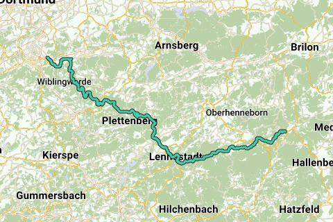 Als u de laatste 100 km naar Winterberg via een schilderachtige route wilt maken, is dit een mooie optie in plaats van de snelle weg. Het grootste deel van de route leidt u door het mooie Lennetal.