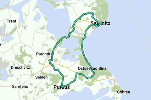Ontdek alle voordelenDeze 75km lange racefietsroute neemt je mee over het grootste en een van de mooiste eilanden van Duitsland. De route begint in Bergen auf Rügen en loopt onder andere langs de dorpen Binz, Sassnitz, Sagard en Lietzow. Een belangrijke bezienswaardigheid onder weg is Prora. Het is een omstreden jaren '30 bouwproject onder leiding van Hitler. Wat een gigantisch badhotel moest worden staat er vandaag bij als een indrukwekkende 4.5km lange ruïne.