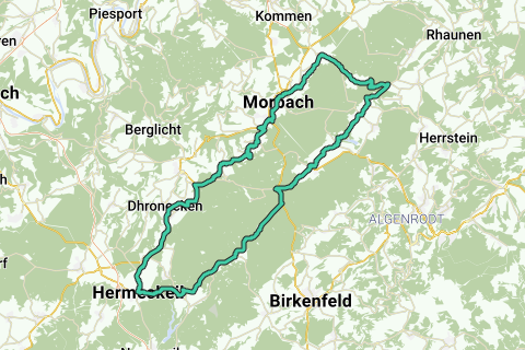 Ontdek alle voordelenDeze racefietsroute start en eindigt in het Hermeskeil. Je rijdt hoofdzakelijk door het Nationalpark Hunsrück-Hochwald, dat in 2015 gesticht werd. Verwacht je aan een prachtige fietsrit door gevarieerde natuur van uitgestrekte bossen tot pittoreske valleien.