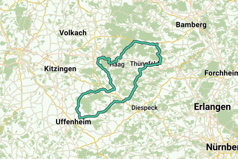 Ontdek alle voordelenDeze motorrit neemt je mee door het Steigerwald, een heuvelachtige en beboste regio in de deelstaat Beieren. Je rijdt er door dichte bossen en door pittoreske valleitjes. De route heeft een totale lengte van 135km.