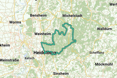 Ontdek alle voordelenDeze motorroute voert je mee door het prachtige Odenwald, vertrekkende in Heidelberg. Je rijdt ook door het mooie Neckartal. Verwacht je aan pittoreske valleitjes, uitgestrekte bossen en gezellige dorpjes. De totale lengte van de route bedraagt 128km.