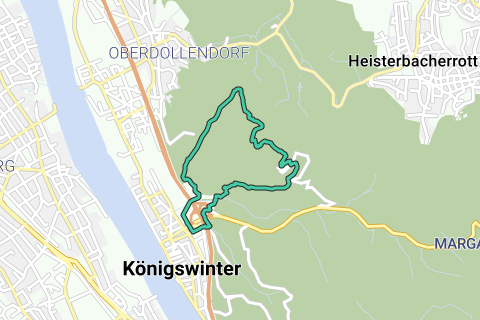 Een mooie lus door Königswinter. Trek een rugzak aan en begin met de wandelroute. Station Königswinter ligt langs deze route. De wandelroute begint op de parkeerplaats.