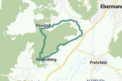 Een mooie ronde door Ebermannstadt. Stap eens af en bewonder het kasteel langs deze route (Turmhügel Rüssenbach). De wandelroute begint bij de parkeerplaats.. Voordat u verder rijdt, stopt u zeker even bij Burgstall Reifenberg.