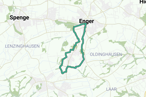 Geniet van het landschap in Enger. Zeker een keer stoppen bij kasteel Enger. We volgen een hele afstand fietspaden langs deze route.