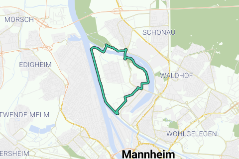 Een mooie ronde door Mannheim. Je fietst door verschillende natuurgebieden. De wandelroute begint bij de parkeerplaats.. Al met al, een mooie route!