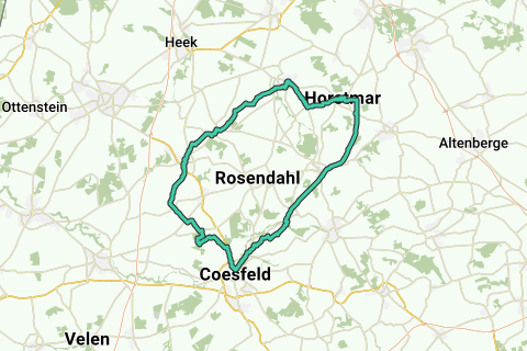 Start en finish: Parkeerplaats Burgerhal, Holtwicker Straße 2, 48653 Coesfeld, Noord-Rijnland-Westfalen, Duitsland; Alternatieve parkeerplaats bij het concerttheater, Osterwicker Str. 32 (onbegrenst en gratis)