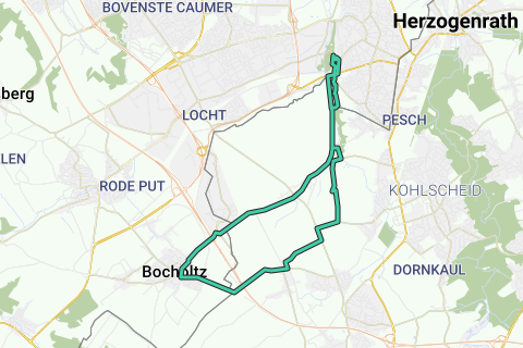 De route gaat namelijk door het paardenlandschap en het begin van de route is een onderdeel van de Witte Wegroute naar Aken. Langs de Amstelbach lopend en Haus Heide passerend komt u in het grensdorpje Horbach uit. Hier aan de route liggen een aantal zeer oude boerderijen die oogstrelend zijn. Daarna komt u langs het windmolenpark van Avantis en in het keiendorp Bocholtz kunt u een versnapering krijgen.