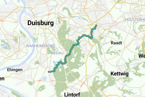 From Mülheim station, this 38th section leads you to the idyllic Ruhr bank. Through a chain of forests you will reach the large Entenfang Lake. We walk past different lakes, climb the Wolfsberg and its viewing tower and finish this forested day at the Duisburg-Grossenbaum station.